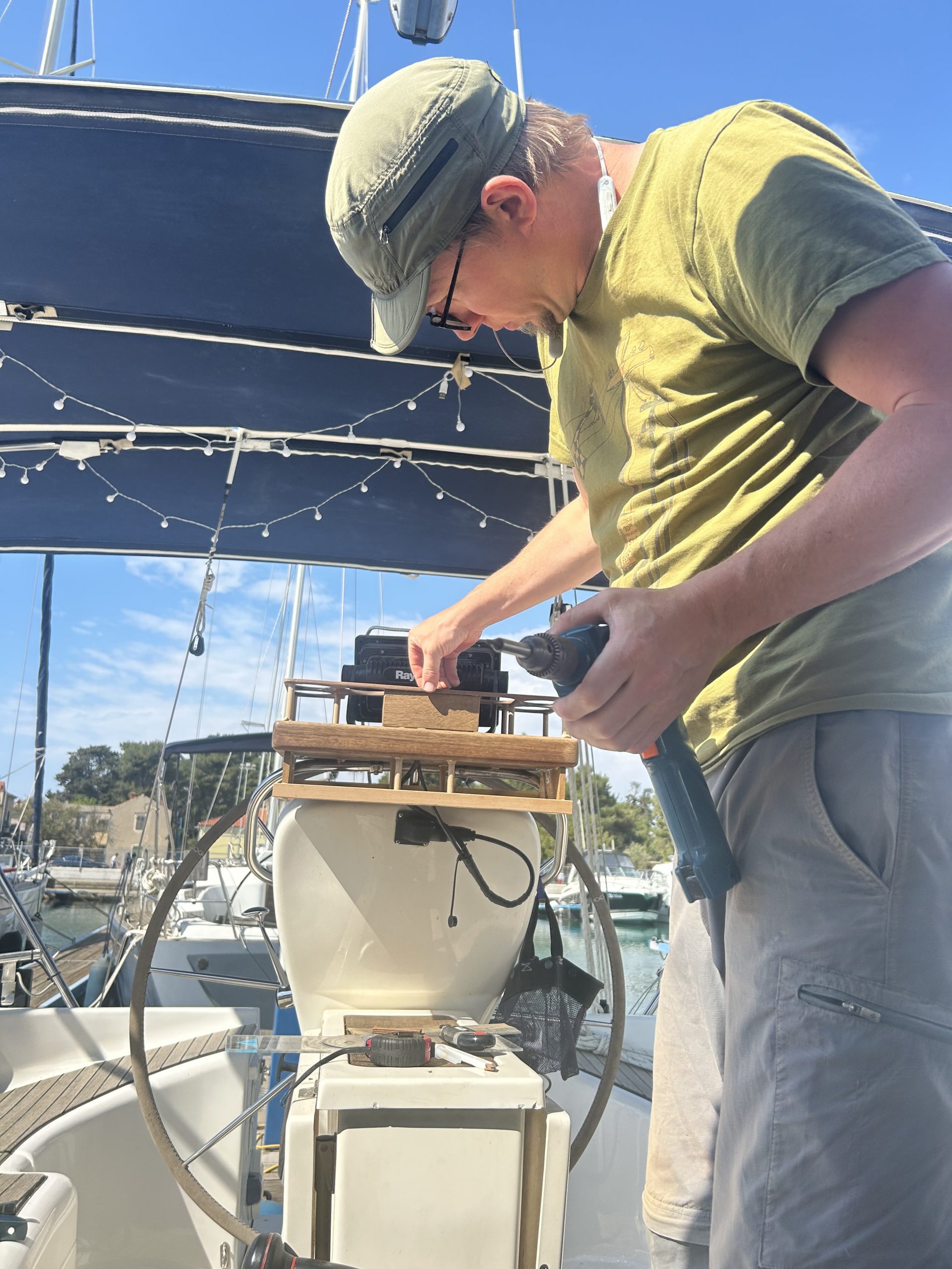 That said, no boat escapes the inevitable pre-departure to-do list. First up: the weather vane. A tiny piece of plastic had broken off, and because it’s a Raymarine part, it of course costs about the same as one kidney. Naturally, we decided to fix it ourselves.