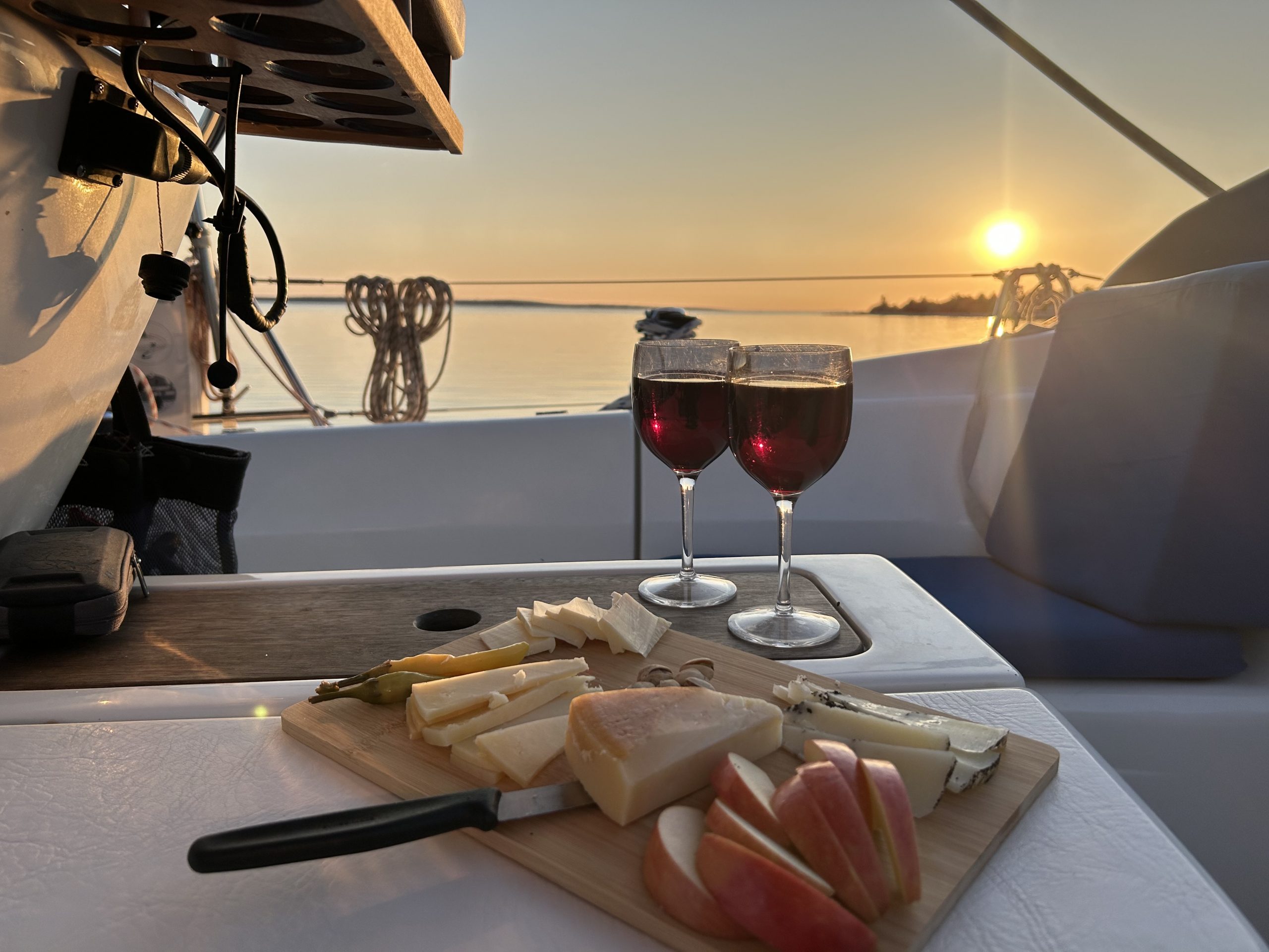 We try to anchor whenever possible (marinas in Croatia are $$$—around €125/night 😬). This means dinghy rides to shore, climbing in and out of the boat, and occasionally getting a little wet. Being a little nimble and adventurous is important. - Sharing is caring